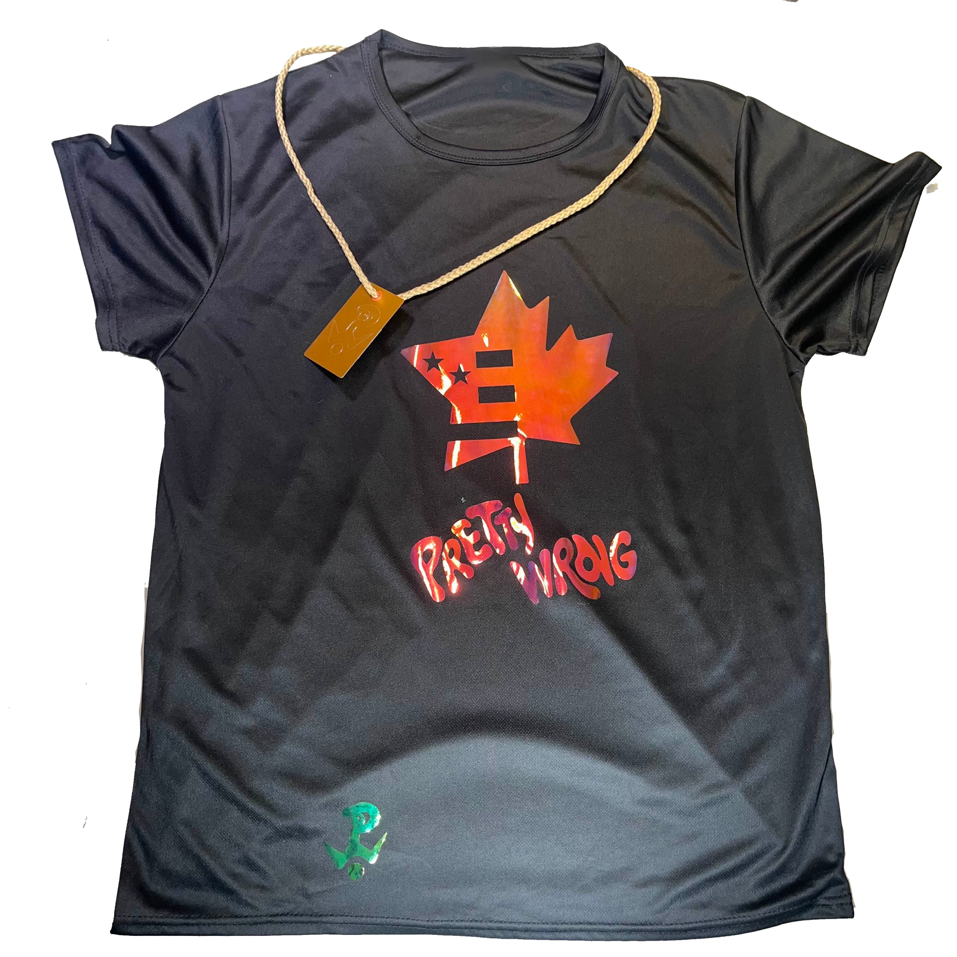 A nice light breathable jersey material with a Holographic vinyl print